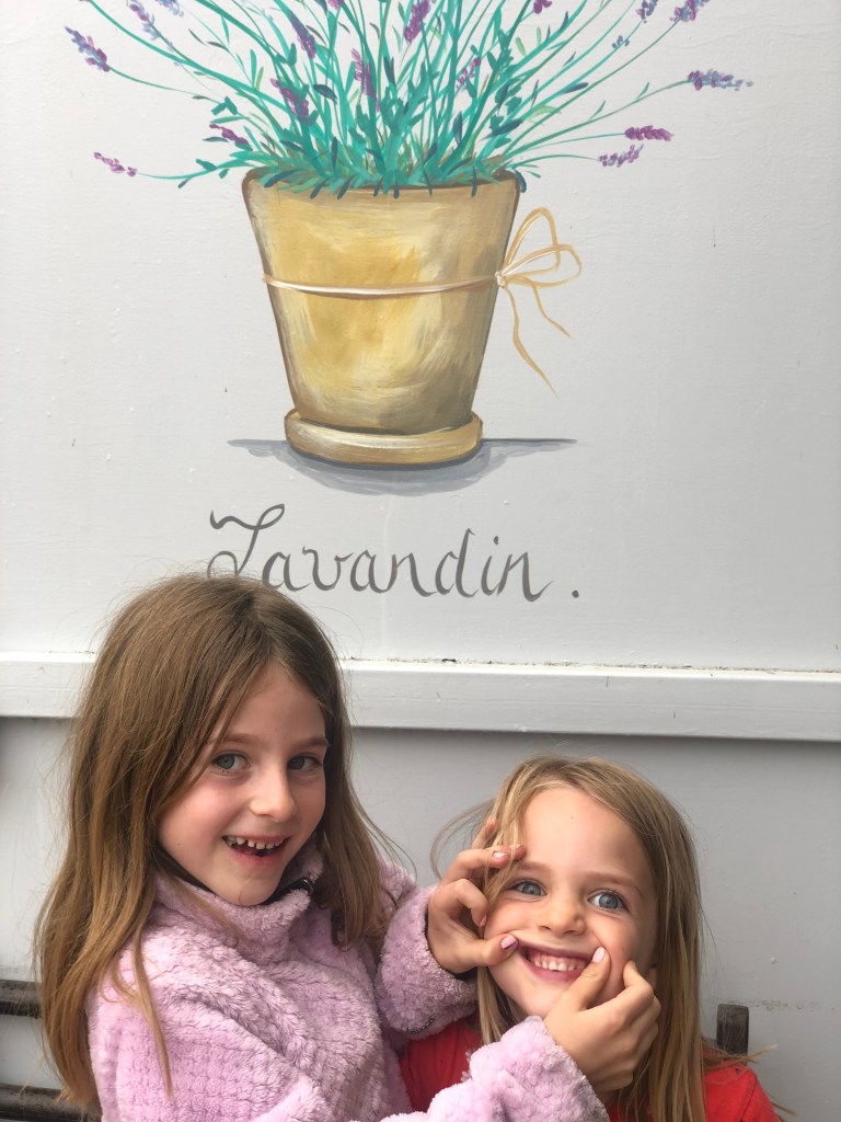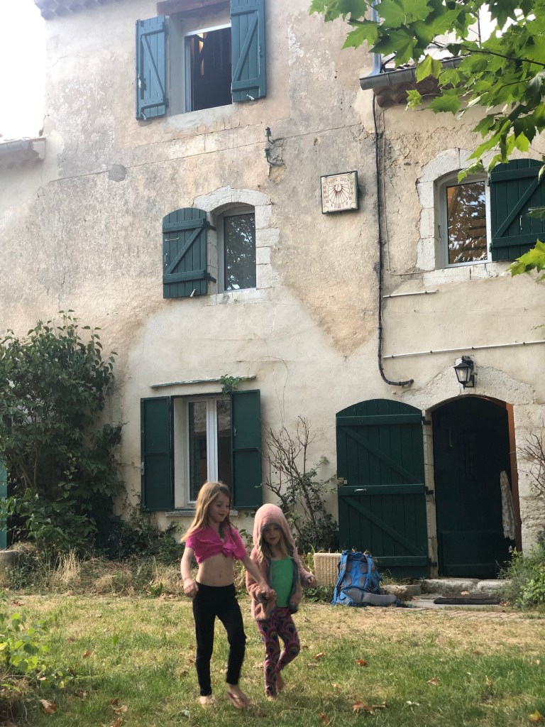 A week before school started (more on that, soon!) we hopped in a tiny rental car and drove 7 hours on some verrrry windy roads to Provence and the little town of Palud Sur Verdon (population 340). Our home for the week was a 400 year old stone farmhouse with a big walled in garden full of snails sunning on the brick paths. The girls were thrilllllllled to have a yard again and hardly came inside after the rains passed. We loved the early morning walks past cow and sheep fields to pick up croissants and baguettes in the village. And loved the deep quiet of the Provence countryside. The girls said that Palud reminded them of Princeton. π